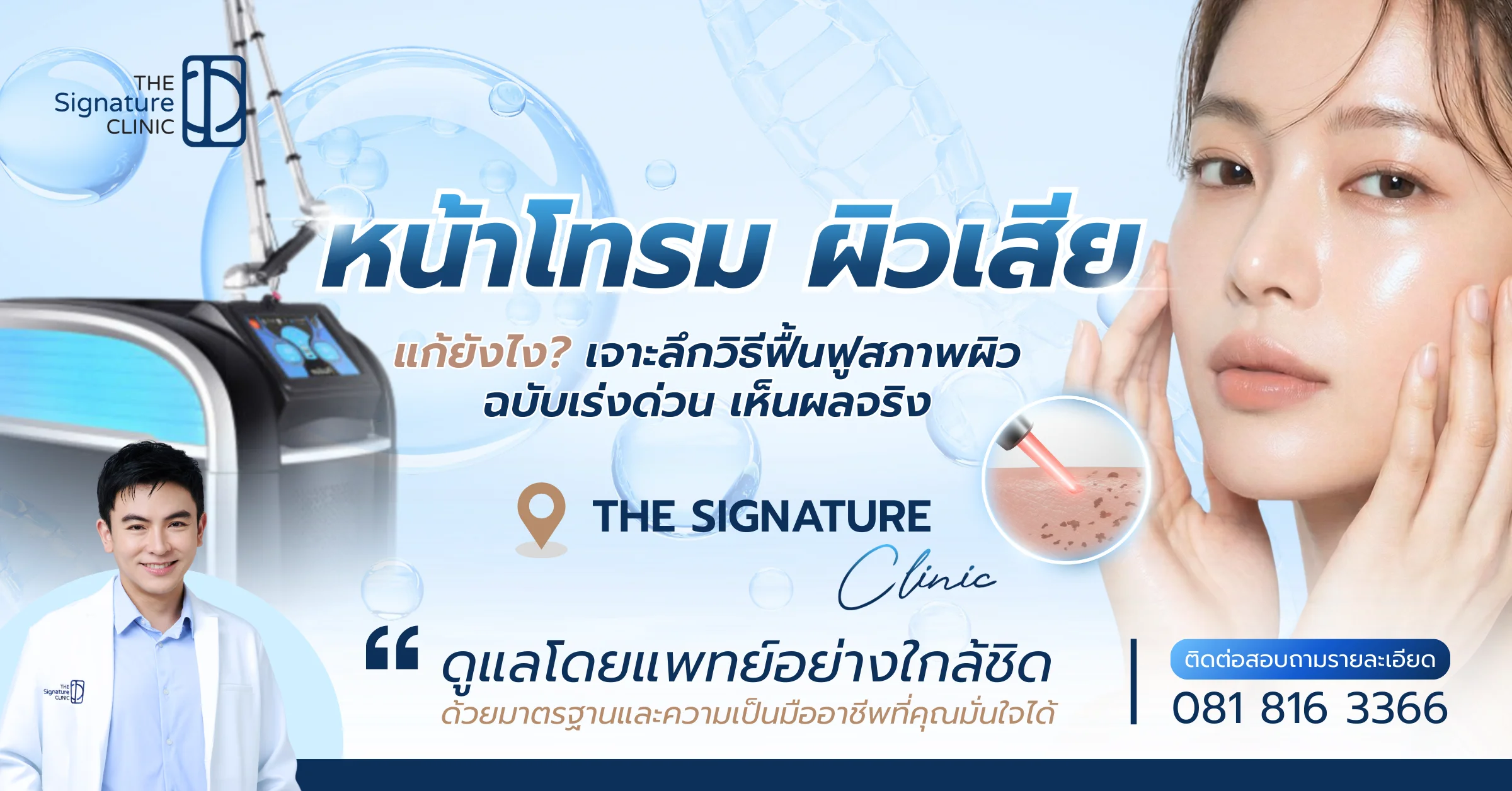 The Signature Clinic เราให้ความสำคัญกับการส่งต่อความรู้ที่ถูกต้องในการดูแลผิวพรรณอย่างมีประสิทธิภาพด้วย เราได้รวบรวมบทความที่เกี่ยวข้องกับการบำรุงผิว การเลือกใช้ผลิตภัณฑ์ตามสภาพผิว วิธีปรับผิวขาวกระจ่างใส การรักษาฝ้า กระ สิว และปัญหาผิวต่างๆ โดยเนื้อหาได้รับการตรวจทานโดยแพทย์ผู้เชี่ยวชาญของเรา เพื่อให้ทุกคนสามารถดูแลตัวเองได้อย่างถูกวิธี ควบคู่ไปกับการเข้ารับบริการจากผู้ชำนาญการ ในการก้าวสู่เป้าหมายแห่งความงามที่สมบูรณ์แบบ