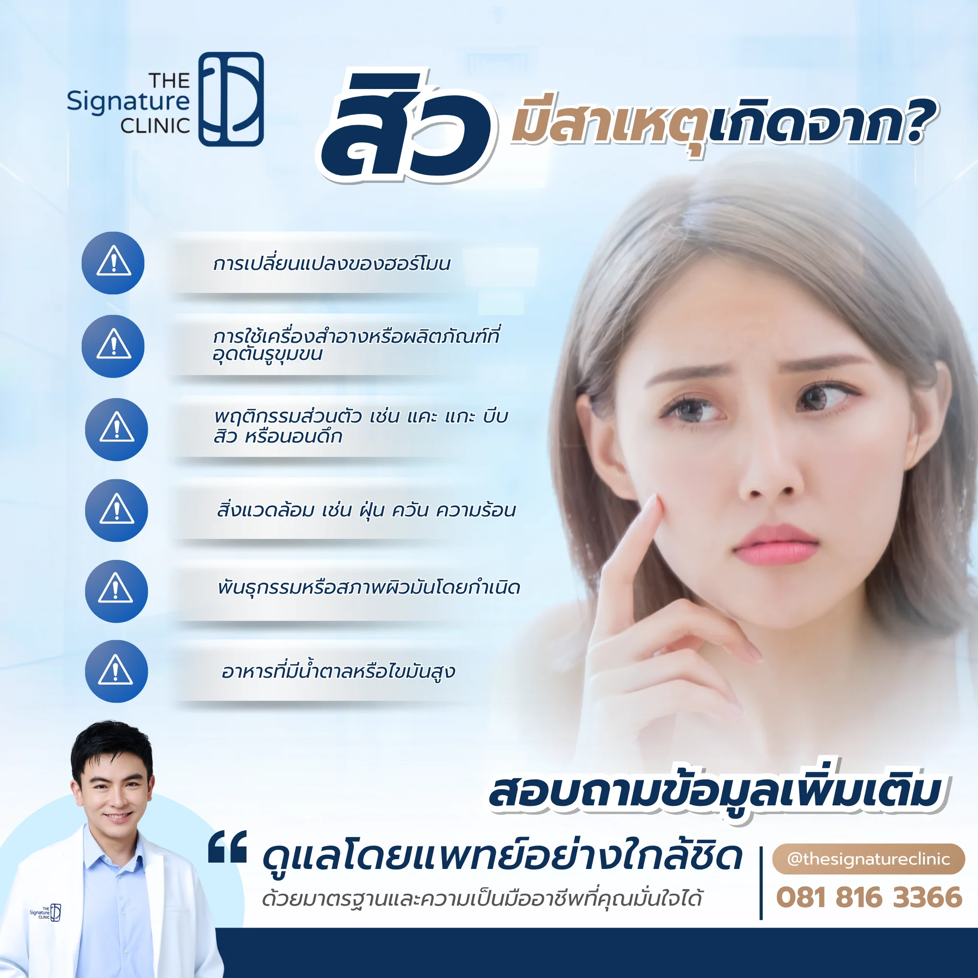 รักษาสิวสามารถเริ่มต้นได้จากการดูแลตนเองอย่างเหมาะสม และเลือกแนวทางที่เหมาะสมกับสภาพผิว หากต้องการผลลัพธ์ที่เห็นผล ปลอดภัย และยั่งยืน การเข้ารับการรักษาสิวที่คลินิกที่ได้มาตรฐานคือคำตอบ The Signature Clinic พร้อมให้คำปรึกษาและดูแลอย่างมืออาชีพด้วยเทคโนโลยีระดับโลก เพื่อผิวใสมั่นใจในแบบของคุณ