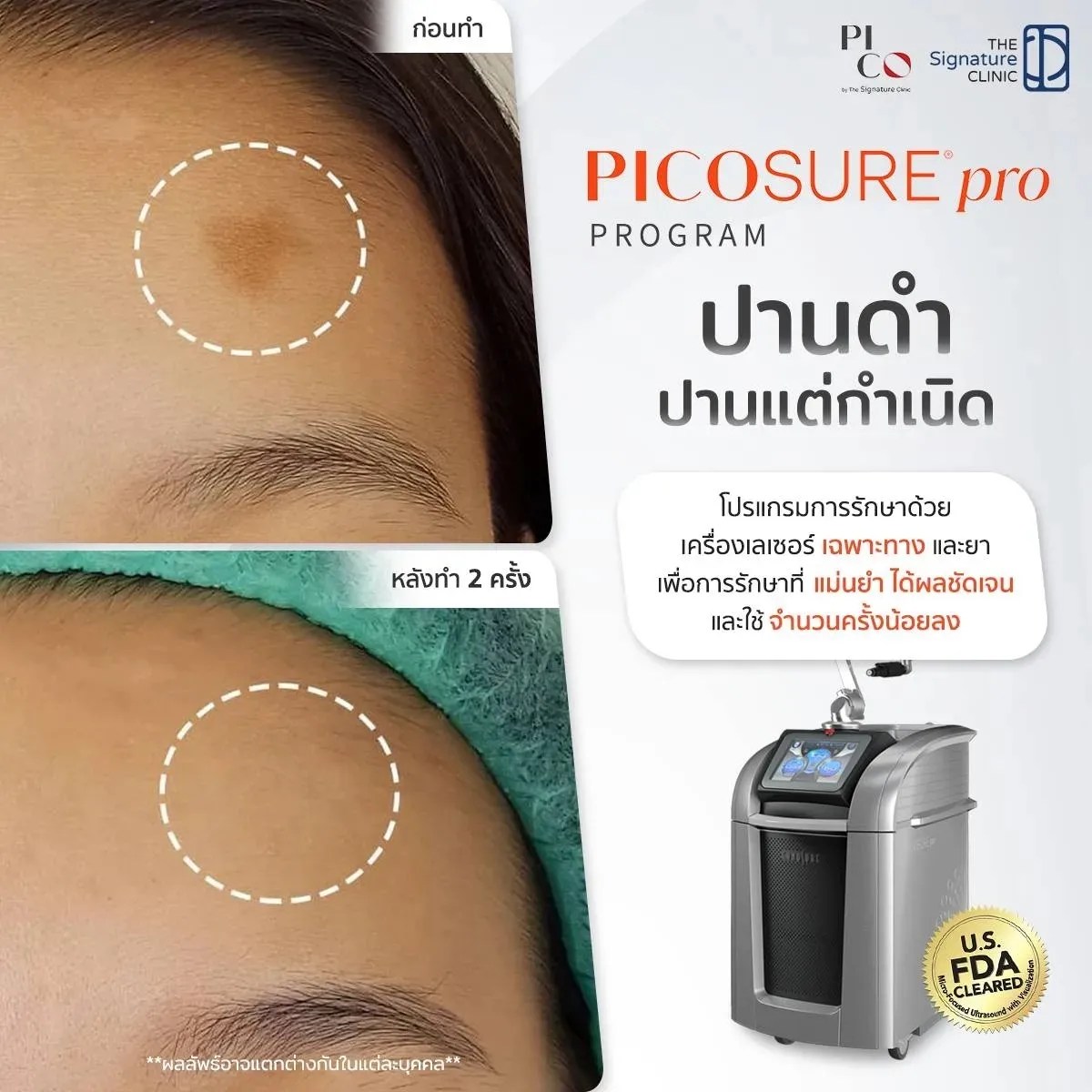 ทางออกของการรักษา: เทคโนโลยี Picosure Pro (Picosecond Laser) เป็นวิธีที่มีประสิทธิภาพสูงในการรักษาปานที่เกิดจากเม็ดสี โดยส่งพลังงานความเร็วสูงเข้าไปกระแทกเม็ดสีที่ผิดปกติในชั้นลึกให้แตกละเอียด โดยไม่ทำลายเนื้อเยื่อผิวหนังรอบข้าง ช่วยให้รอยปานจางลงพร้อมกระตุ้นการสร้างคอลลาเจนใหม่