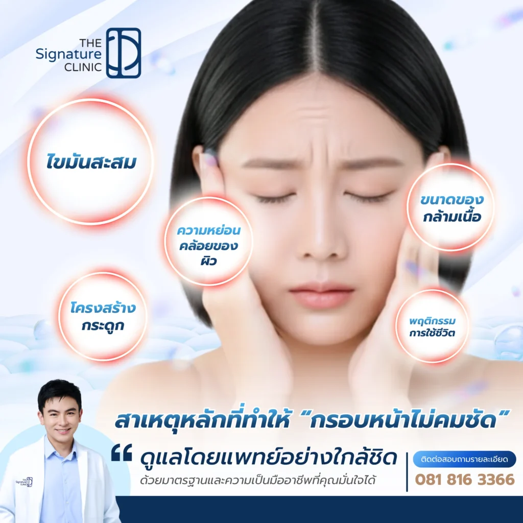 • พฤติกรรมการใช้ชีวิต (Lifestyle): ปัจจัยอื่นๆ เช่น การเปลี่ยนแปลงของน้ำหนักตัวอย่างรวดเร็ว หรือแม้แต่พันธุกรรม ล้วนส่งผลต่อลักษณะของกรอบหน้าได้เช่นกัน