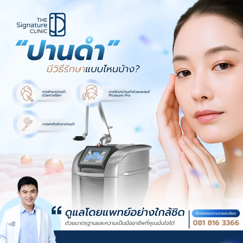 ที่ The Signature Clinic เราให้ความสำคัญกับการวินิจฉัยที่แม่นยำและการวางแผนการรักษาเฉพาะบุคคล เราเข้าใจดีว่าปัญหาผิวพรรณ โดยเฉพาะปานดำ ส่งผลต่อความมั่นใจของคุณอย่างไร ด้วยทีมแพทย์ที่มีความชำนาญและประสบการณ์สูง พร้อมด้วยเทคโนโลยี PicoSure Pro ซึ่งเป็นมาตรฐานระดับโลกในการรักษาปัญหาเม็ดสี เราจึงสามารถมอบผลลัพธ์การรักษาที่มีประสิทธิภาพและความปลอดภัยสูงสุด เพื่อให้คุณกลับมามั่นใจในผิวที่เรียบเนียนอีกครั้ง หากคุณมีความกังวลเกี่ยวกับปานดำ สามารถนัดหมายเพื่อเข้ารับคำปรึกษากับทีมแพทย์ของเราได้ที่ The Signature Clinic