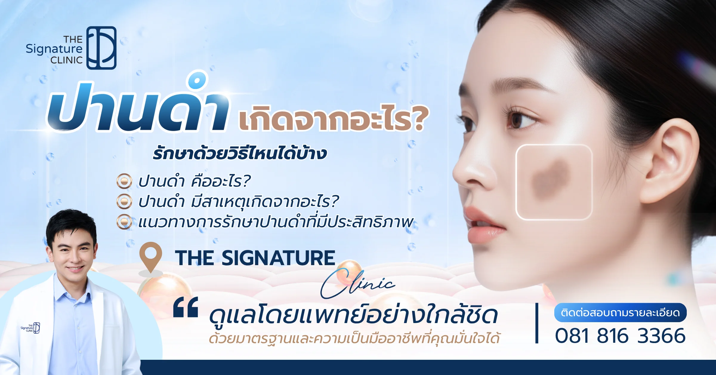 ที่ The Signature Clinic เราให้ความสำคัญกับการวินิจฉัยที่แม่นยำและการวางแผนการรักษาเฉพาะบุคคล เราเข้าใจดีว่าปัญหาผิวพรรณ โดยเฉพาะปานดำ ส่งผลต่อความมั่นใจของคุณอย่างไร ด้วยทีมแพทย์ที่มีความชำนาญและประสบการณ์สูง พร้อมด้วยเทคโนโลยี PicoSure Pro ซึ่งเป็นมาตรฐานระดับโลกในการรักษาปัญหาเม็ดสี เราจึงสามารถมอบผลลัพธ์การรักษาที่มีประสิทธิภาพและความปลอดภัยสูงสุด เพื่อให้คุณกลับมามั่นใจในผิวที่เรียบเนียนอีกครั้ง หากคุณมีความกังวลเกี่ยวกับปานดำ สามารถนัดหมายเพื่อเข้ารับคำปรึกษากับทีมแพทย์ของเราได้ที่ The Signature Clinic