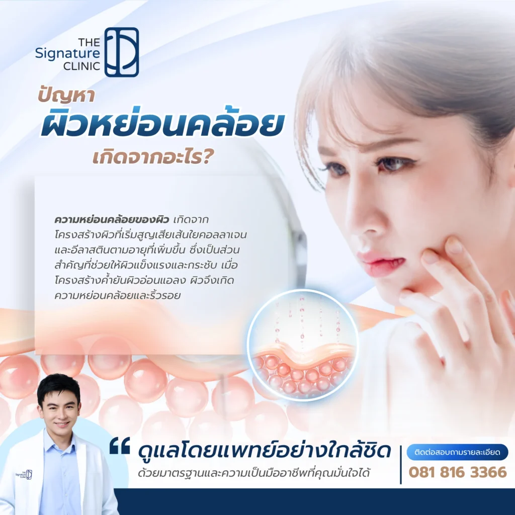 - The Signature Clinic: เราให้ความสำคัญกับการประเมินปัญหาผิวอย่างตรงจุด โดยมีทีมแพทย์ผู้ชำนาญการ และมีเทคโนโลยีอย่าง โปรแกรม XERF (นวัตกรรม Monopolar RF) เป็นอีกทางเลือกในการดูแลปัญหาผิวหย่อนคล้อยอย่างมีประสิทธิภาพ