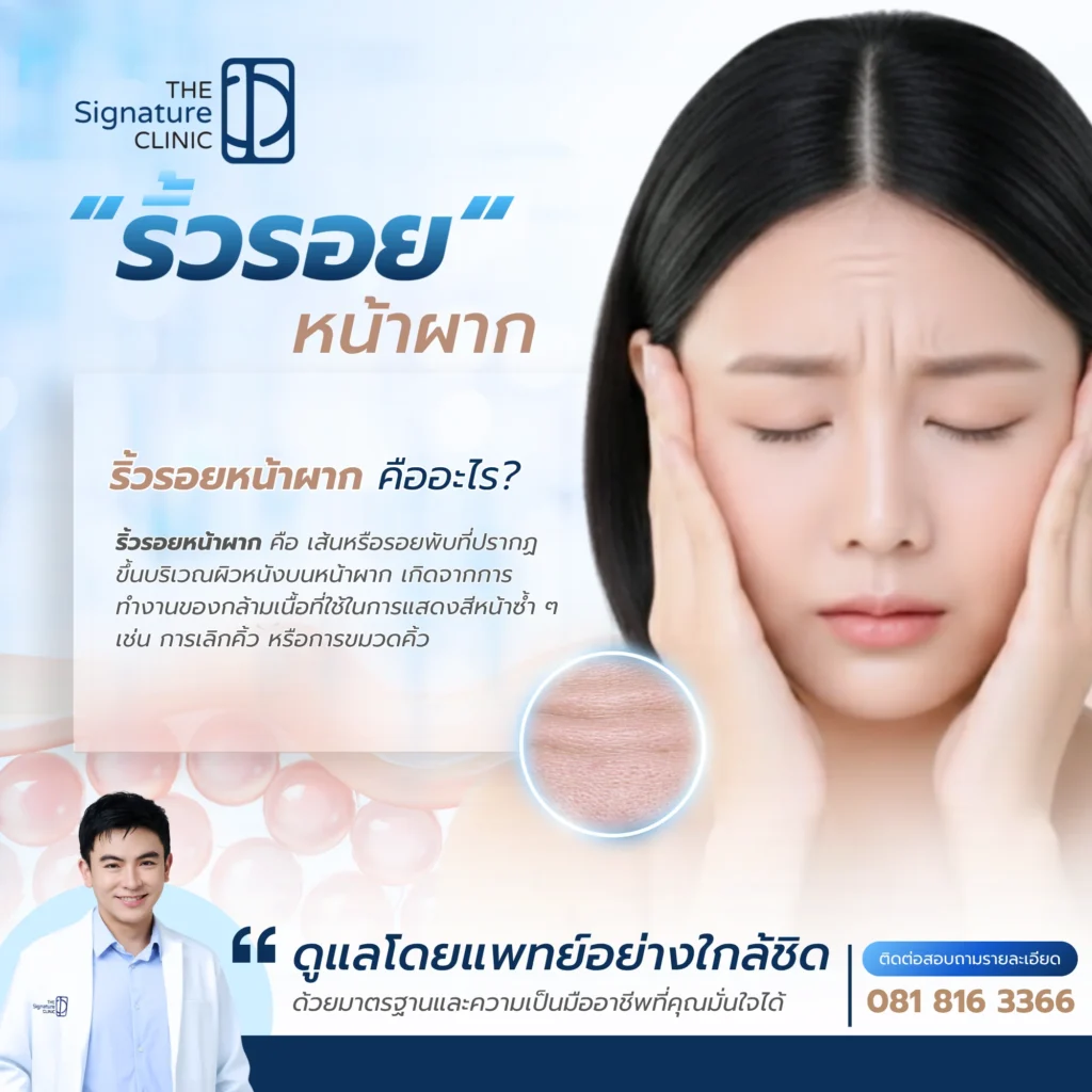 ริ้วรอยหน้าผาก เป็นหนึ่งในสัญญาณแห่งวัยที่สร้างความกังวลใจให้ใครหลายคน ทำให้ใบหน้าดูเหนื่อยล้าและมีอายุเกินจริง หลายท่านอาจสงสัยว่าปัญหานี้เกิดจากอะไร และจะมีวิธี ลดรอยย่นหน้าผาก ได้อย่างไรบ้าง บทความนี้จาก The Signature Clinic จะพาไปทำความเข้าใจถึงต้นตอของปัญหา พร้อมแนะนำแนวทางแก้ไข ตั้งแต่การดูแลตัวเองในชีวิตประจำวันไปจนถึงการใช้เทคโนโลยีทางการแพทย์ เพื่อเป็นข้อมูลในการตัดสินใจเลือกวิธี ลดริ้วรอยหน้าผาก ที่เหมาะสมและให้ผลลัพธ์ที่น่าพึงพอใจ