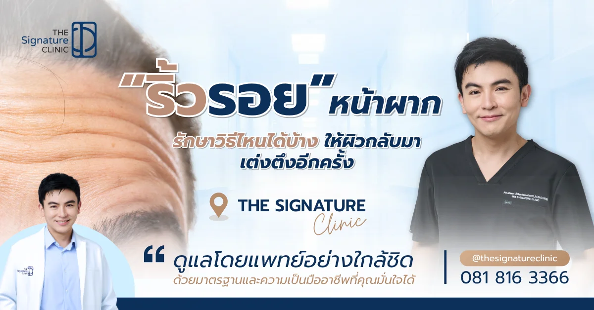 ริ้วรอยหน้าผาก เป็นหนึ่งในปัญหาที่หลายคนเผชิญเมื่ออายุมากขึ้น ไม่เพียงแต่ส่งผลต่อความมั่นใจ ยังอาจทำให้ใบหน้าดูเหนื่อยล้าและมีอายุได้อย่างเห็นได้ชัด การดูแลรักษารอยหน้าผากที่เหมาะสมสามารถช่วยให้ผิวดูเต่งตึงและอ่อนเยาว์ยิ่งขึ้น The Signature Clinic ให้บริการดูแลและฟื้นฟูปัญหาริ้วรอยหน้าผากด้วยวิธีที่ปลอดภัยและเหมาะสมกับแต่ละบุคคล