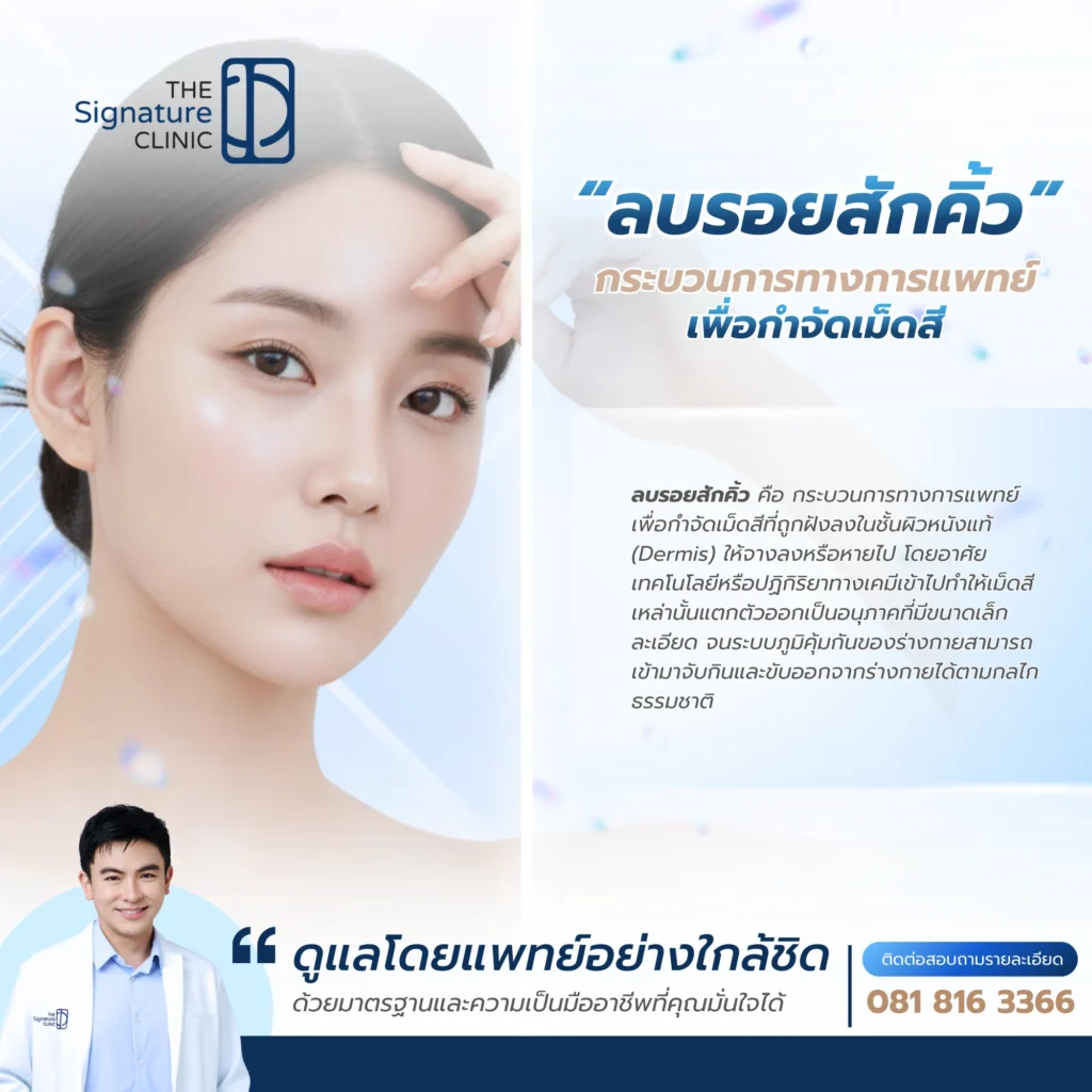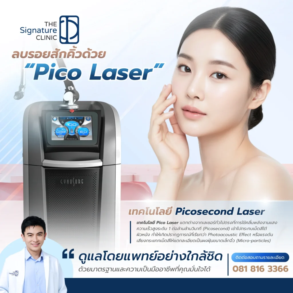 The Signature Clinic (ประเทศไทย) เข้าใจถึงความกังวลของผู้ที่มีปัญหารอยสักคิ้ว ทางคลินิกจึงเลือกใช้เทคโนโลยีระดับโลกอย่าง Picosure Pro ซึ่งเป็น Picosecond Laser จาก Cynosure สหรัฐอเมริกา ที่มีความโดดเด่นเรื่องความแม่นยำและการถนอมผิว ดูแลโดยทีมแพทย์ผู้ชำนาญการที่มีประสบการณ์สูงในการวิเคราะห์เม็ดสีและปรับพลังงานให้เหมาะกับแต่ละบุคคล เพื่อให้มั่นใจว่าคุณจะได้รับผลลัพธ์ที่เรียบเนียน ปลอดภัย และคืนความมั่นใจกลับมาได้อีกครั้ง โดยปราศจากการขายคอร์สที่กดดัน ให้คุณตัดสินใจได้ด้วยความสบายใจ ดูข้อมูลบริการและเทคโนโลยีเพิ่มเติม