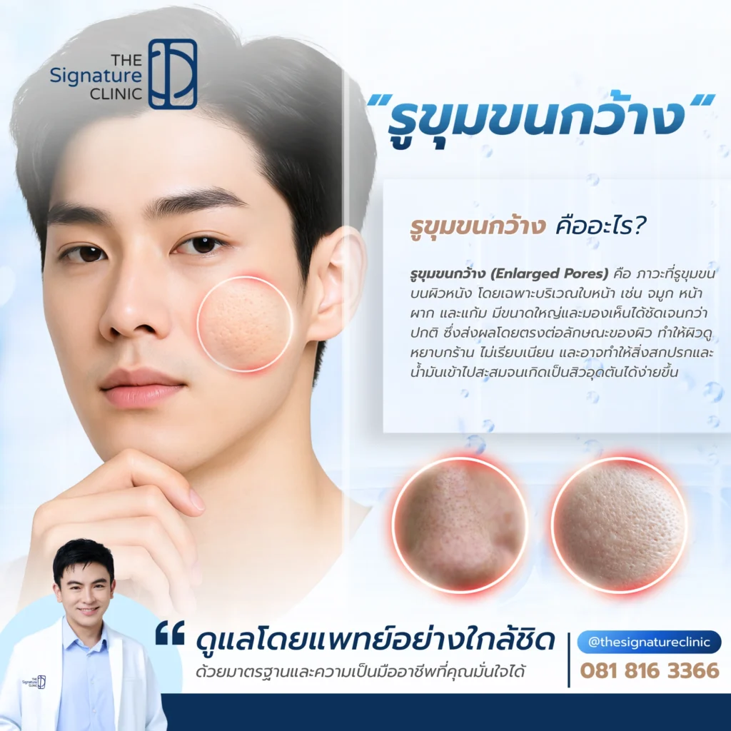 ปัญหารูขุมขนกว้างทำให้ผิวหน้าดูไม่เรียบเนียน แต่งหน้าไม่ติดทน และอาจบั่นทอนความมั่นใจของใครหลายคนใช่ไหมคะ? การใช้ เลเซอร์รูขุมขน จึงกลายเป็นหนึ่งในวิธีที่ได้รับความนิยมอย่างสูงในการจัดการปัญหานี้ แต่หลายคนก็ยังคงสงสัยว่าการทำ เลเซอร์กระชับรูขุมขน นั้นได้ผลจริงหรือไม่ และการรักษา รูขุมขนกว้างด้วยเลเซอร์ เหมาะกับสภาพผิวของเราหรือเปล่า บทความนี้จาก The Signature Clinic ได้รวบรวมทุกคำตอบที่คุณควรรู้ ตั้งแต่สาเหตุที่แท้จริงของปัญหา ไปจนถึงการเลือกเทคโนโลยีและคลินิกที่เหมาะสม เพื่อให้คุณตัดสินใจได้อย่างมั่นใจและได้ผลลัพธ์ที่ดีที่สุดค่ะ