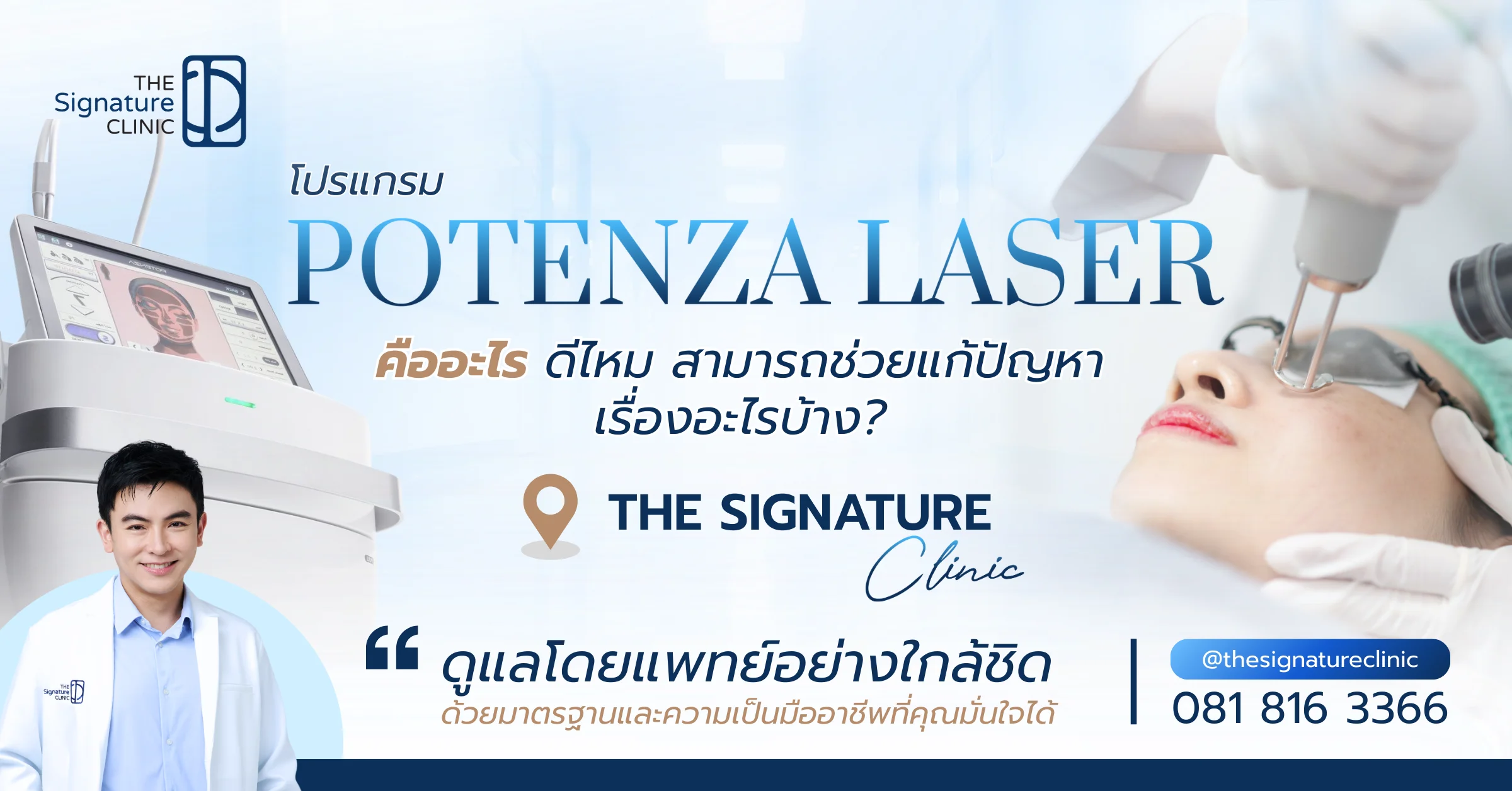 Potenza Laser เป็นเทคโนโลยีเลเซอร์รุ่นใหม่ที่ช่วยแก้ไขปัญหาผิวอย่างครอบคลุม ตั้งแต่การยกกระชับผิวหน้า ฟื้นฟูผิว รักษาหลุมสิว และลดริ้วรอย ผลลัพธ์ขึ้นอยู่กับการวิเคราะห์และวางแผนการรักษาที่แม่นยำโดยแพทย์ผู้ชำนาญ การเลือกคลินิกที่เชื่อถือได้อย่าง The Signature Clinic จึงเป็นปัจจัยสำคัญที่ช่วยให้คุณมั่นใจในประสิทธิภาพและความปลอดภัยของการทำ Potenza Laser รวมถึงบริการหลังการรักษาที่ครบถ้วน ช่วยให้คุณได้ผลลัพธ์ตามที่คาดหวังอย่างแท้จริง