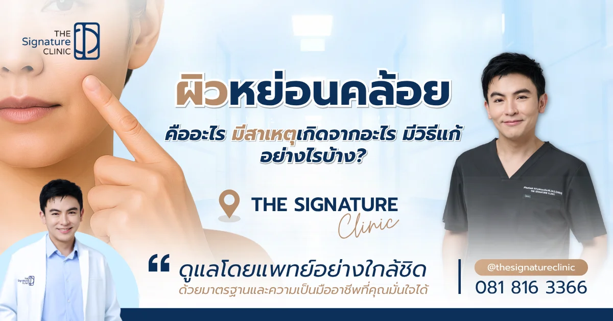 ผิวหย่อนคล้อย เป็นปัญหาผิวที่มาพร้อมกับอายุที่เพิ่มขึ้น เมื่อเรามีอายุมากขึ้น ผิวของเราจะแสดงออกถึงความเสื่อมสภาพผ่านปัญหาต่าง ๆ โดยเฉพาะอย่างยิ่งกับปัญหาผิวหย่อนคล้อย ที่จะทำให้ผิวและใบหน้าของเราดูแก่กว่าวัยได้อย่างน่าใจหาย ซึ่งในวันนี้ The Signature Clinic จะพาทุกคนมาทำความเข้าใจกับปัญหาผิวหย่อนคล้อย พร้อมกับแนะนำวิธีดูแลรักษาให้ผิวกลับมาเต่งตึงอีกครั้ง