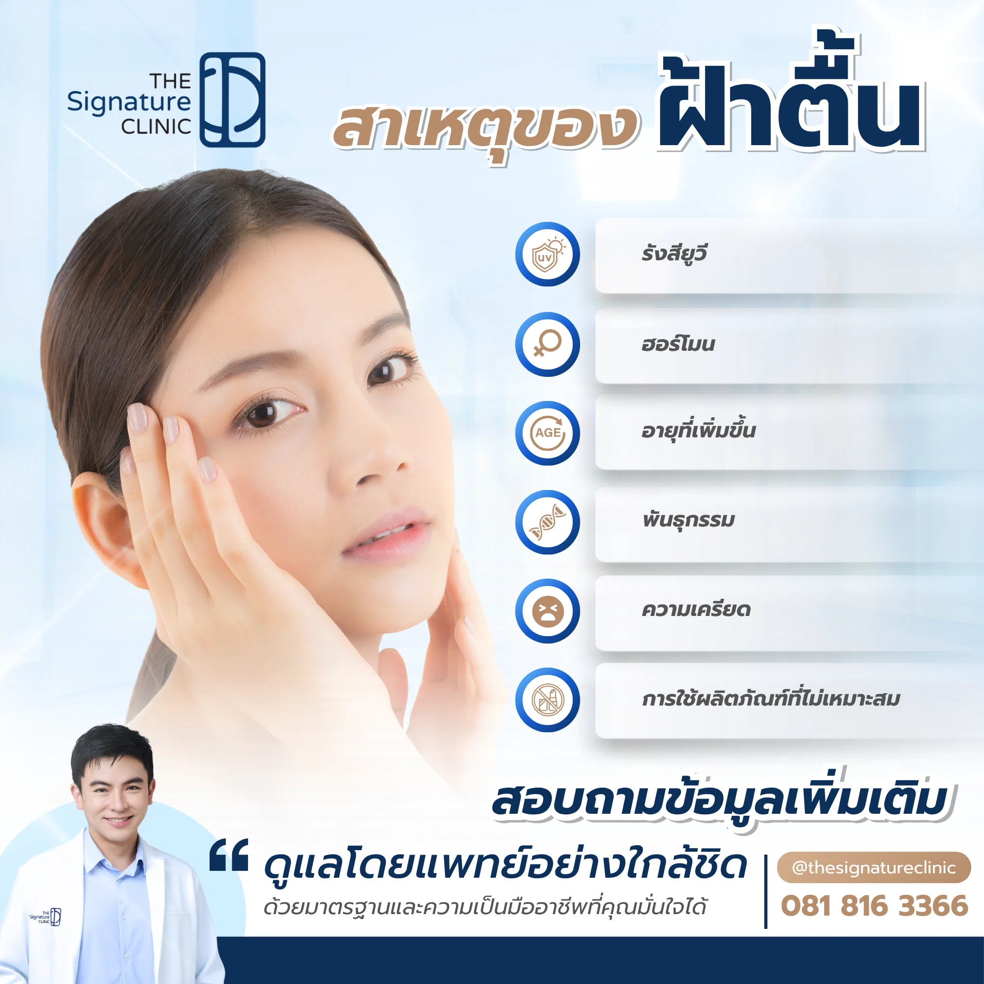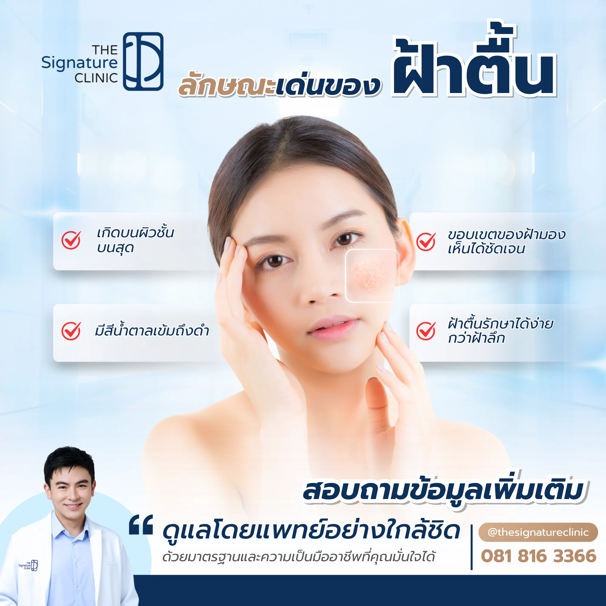 หากสนใจรักษาฝ้าตื้น กับผู้ชำนาญการ สามารถติดต่อใช้บริการ The Signature Clinic ได้แล้ววันนี้!