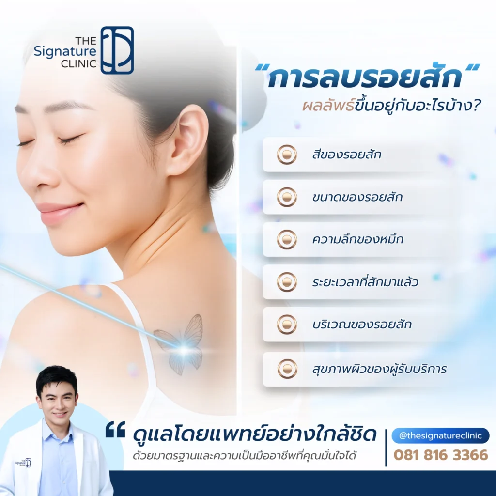 • ปัจจัยที่ส่งผลต่อประสิทธิภาพของการลบรอยสัก ได้แก่: