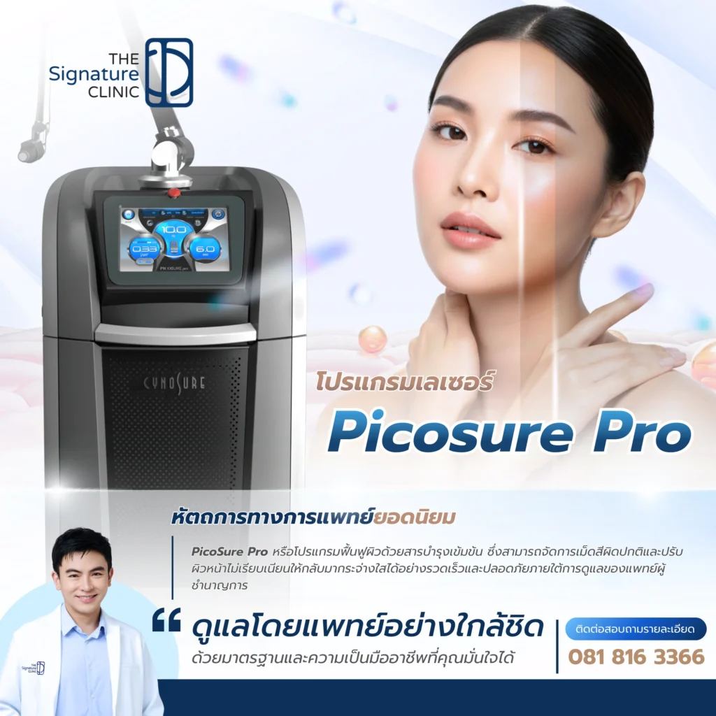 ที่ The Signature Clinic เราเลือกใช้ Picosure Pro ซึ่งเป็นเทคโนโลยี Picosecond Laser รุ่นใหม่ล่าสุด ที่ได้รับการยอมรับในระดับ Gold Standard