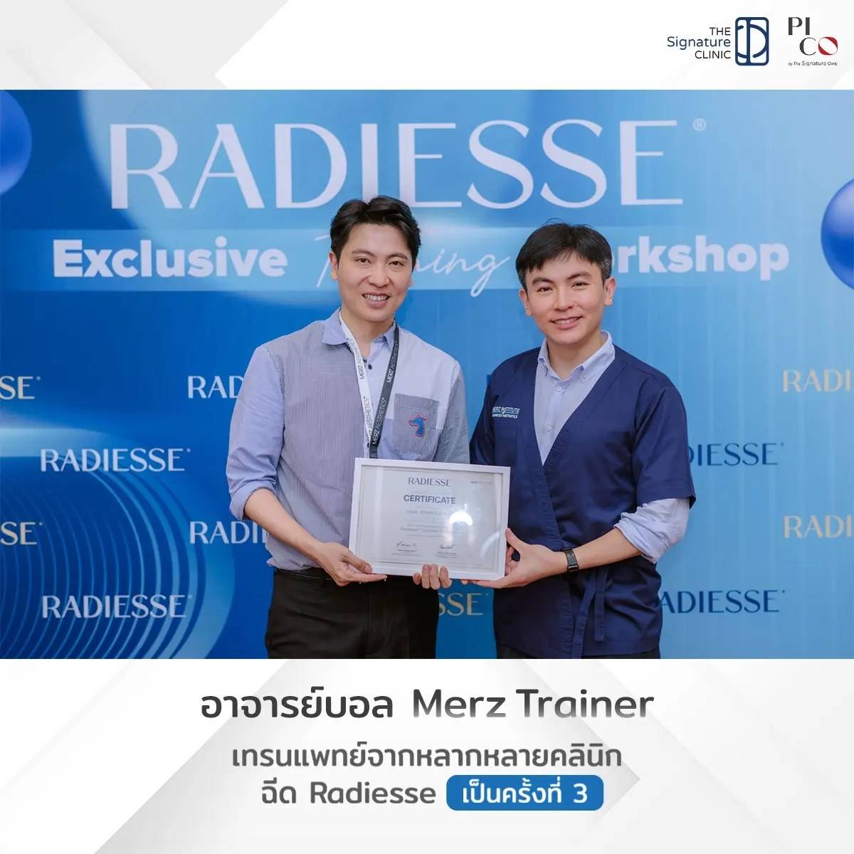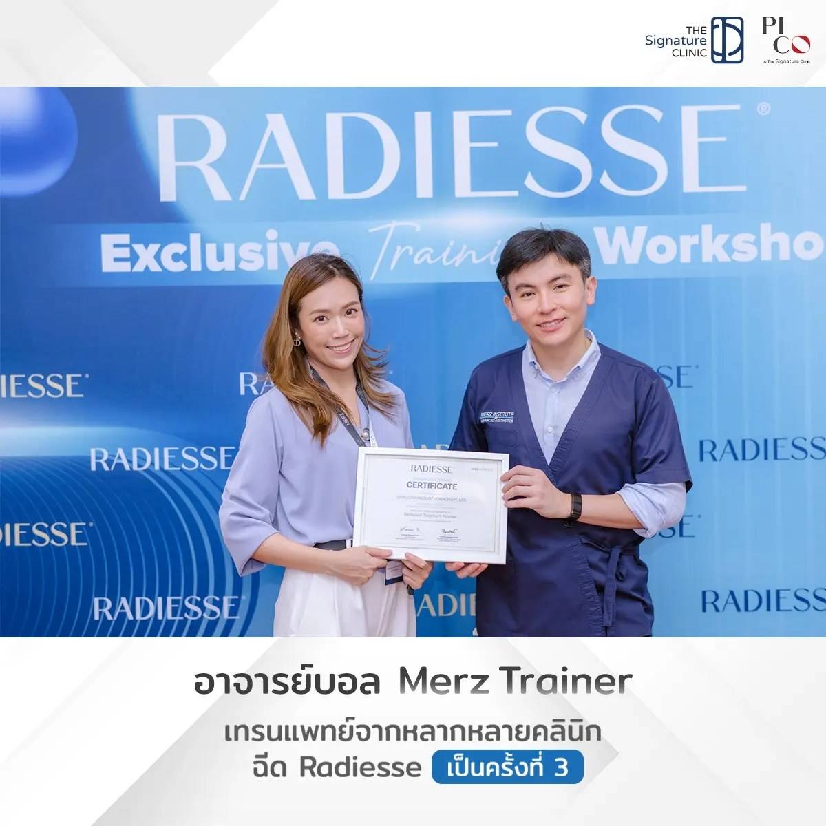นพ.ภูริวัจน์ อริยกุศลสุทธิ (หมอบอล) เป็น 1 ใน 20 แพทย์ผู้สอน Radiesse Trainer ของ Merz และ The Signature Clinic เป็น 1 ใน 100 คลินิกแรกของเมืองไทยที่ให้บริการ Radiesse ศาสตร์แห่งการฟื้นฟูผิวตัวล่าสุด